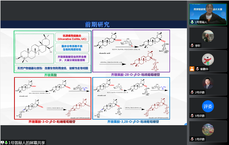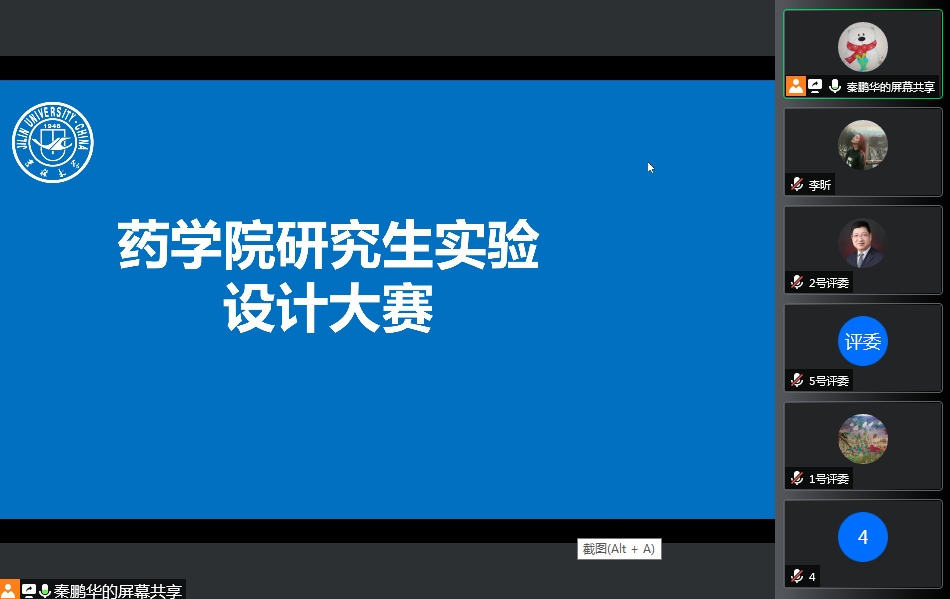 In order to further strengthen the cultivation of innovative thinking and experimental design ability of postgraduate students, the School of Pharmacy held a experimental design competition on December 6th. This competition was conducted online through Tencent conference, and the students presented their experimental design content online and defended.