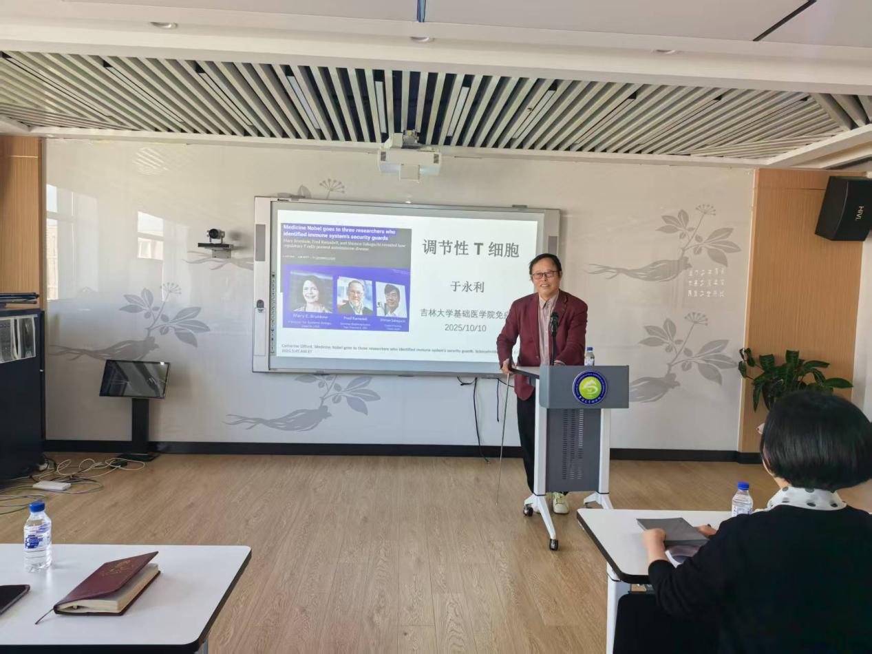 基础医学院于永利教授担任主讲,他以“2025年诺贝尔生理学或医学奖解读”为主题,为全院师生带来了一场兼具学术高度与科普温度的精彩报告。讲座由包子漫画