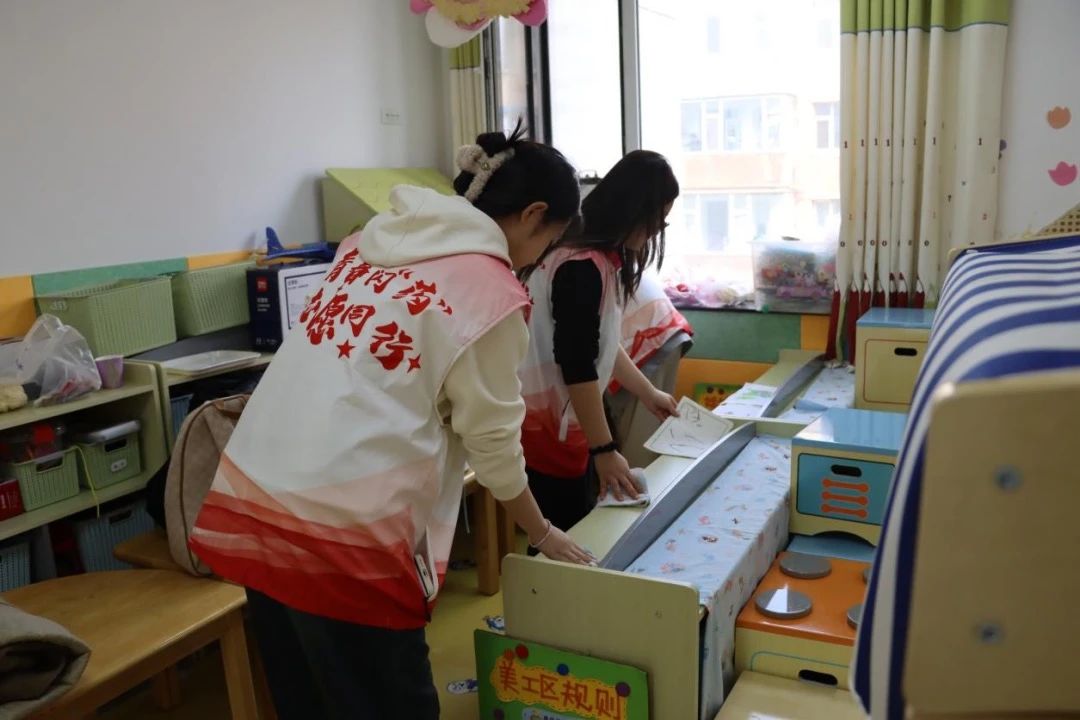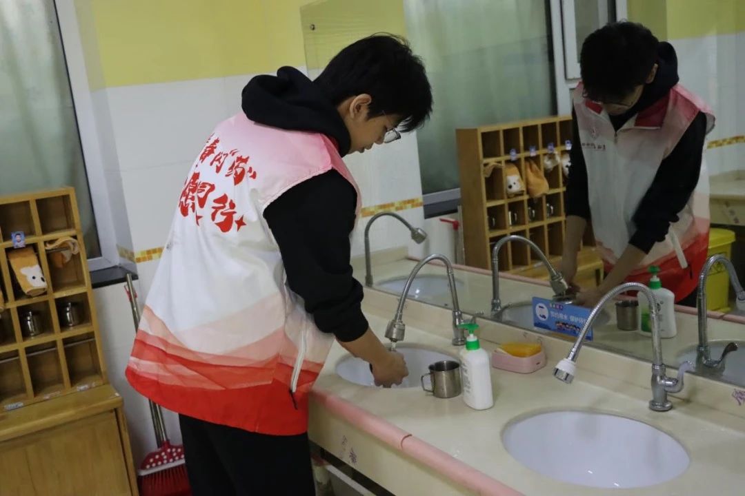 清洁小分队轻手轻脚整理教具柜,细心消毒玩具区,跟随老师帮助清洗孩子们的玩具和生活用具,让每片积木都折射阳光的温度。