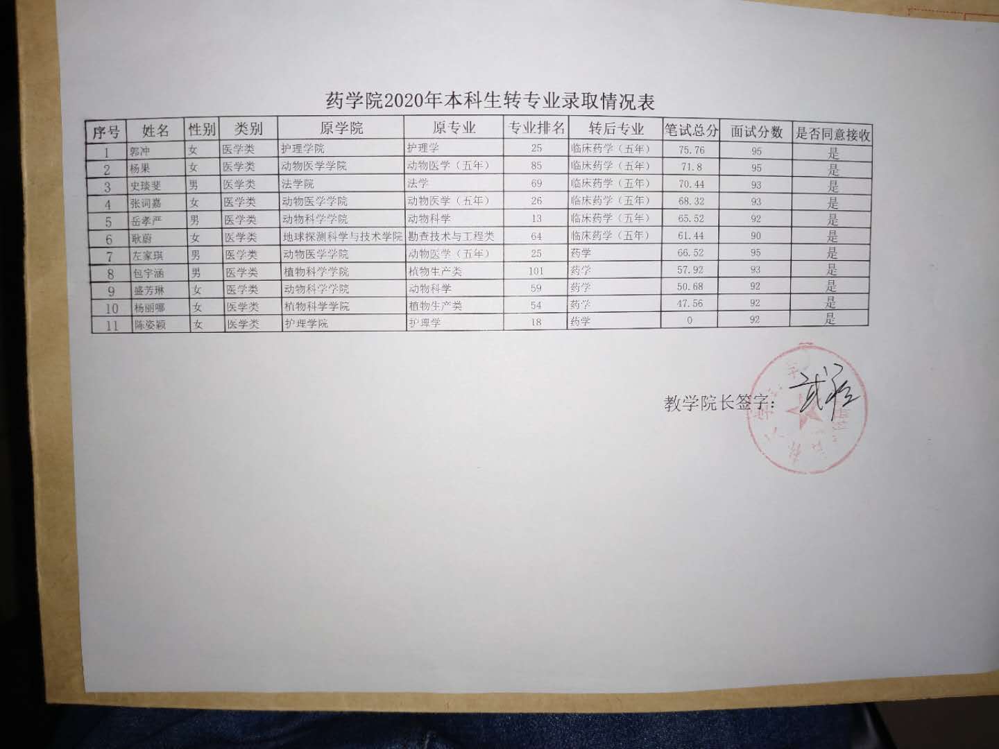 包子漫画 2020年本科生转专业录取情况表
