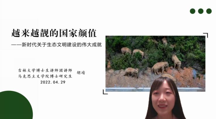 马克思主义学院2020级博士研究生胡靖分享的以《新时代关于生态文明建设的伟大成就》为主题的相关报告。