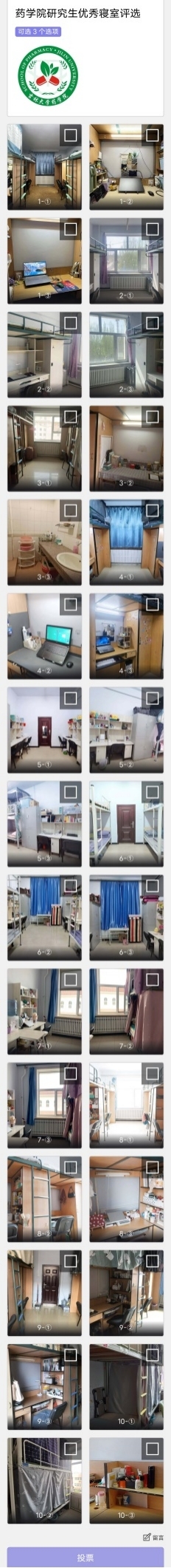 团委研究生会秘书部负责组织此次优秀寝室的评选活动,并从广大同学的寝室照片投稿中挑选出了表现较好的若干寝室,而后组织我院全体研究生从中票选出自己心中的“最佳寝室”。