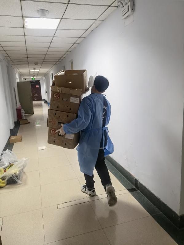 学生干部、党员也都积极参加到志愿工作中,搬运物资、发放餐水、协助核酸检测工作......男生们主动抬重物,女生们则负责清点分发。每当餐车缓缓驶来,志愿者们各自就位,按楼层分餐,工作早已做得熟练而有序。不管是学院老师,还是学生志愿者,不管做着什么工作,都在朝着防控疫情的中心点发力施策。在由志愿者们保障着日常基本生活的同时,同学们也没有消极怠工,在寝室自觉学习,看文献、开组会......尽管实验室的大门此刻不能向我们敞开,但在春天播种下努力的种子,定会在未来开花结果。在同学们自发组建的六公寓互助群中,一节电池、一管牙膏、几包零食......慷慨的分享互助,传递着的不仅是同学间的友谊与温暖,更是同处境面前彼此鼓励扶持的信心与安心。因为命运相连,所以心心相通。