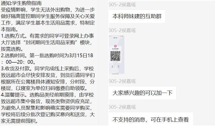 官方公众号发布发的那则《孩子们,我们一定会把饭供上!》中,头戴厨师帽的叔叔阿姨和穿着防护服的工作人员,正在食堂里紧锣密鼓地打包饭菜,由志愿者向各公寓楼的在校生送来三餐。万事开头难,总会遇到各式各样的问题,但学院进行了积极的意见反馈工作,及时了解各公寓楼的实际状况和学生诉求,及时调整,让大家都吃上了学校辛苦提供的热腾腾的饭菜。还有同学打趣说:“以为的隔离生活——没什么可吃的;真实的隔离生活——猪羔子都不敢这么养。”“什么家庭啊一顿四个菜,还带酸奶水果的,解封之日怕不是出栏之时。”每天4万份且能够按时送到每位同学手中的隔离餐,营养丰富又美味;宿舍里随之升腾起来的热气和饭香,都是一个高校对学生最真挚的爱护。