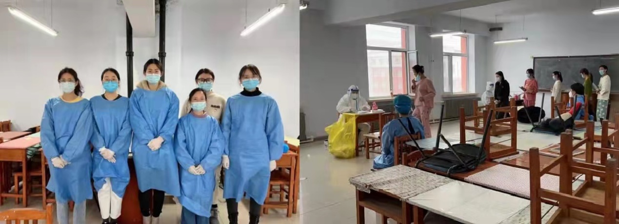 “疫情就是命令,防控就是责任”,面对疫情,药学的学生干部们、党员同志们积极响应号召,各年级各班级同学都积极报名参与志愿者工作,各公寓楼建立互助微信群,同学们互帮互助,大家都在用实际行动去构筑属于自己的青春防线。在外志愿者们是风雪中的战士,在宿舍楼里志愿者们是输送温暖的守卫者。早上7:00的早饭时间,中午11:30的午饭时间,晚上17:30的晚饭时间,志愿者们都准时有序地将食水送到六层楼里的各个宿舍进行分发,女孩子们蓝色、白色的身影出现在四公寓的各个角落。志愿者们除了保障同学们的食水之外,严格按照防疫要求,负责组织分发核酸自测试剂盒并有序组织统一做核酸,让同学们安全有序的进行核酸检测,此外还参与消杀工作,新民四公寓的女孩子们工作量不可谓不大,不可谓不辛苦,但勇敢善良的女孩子们从不言苦、迎难而上,用自己并不强壮的肩膀承担起一栋楼的安全。