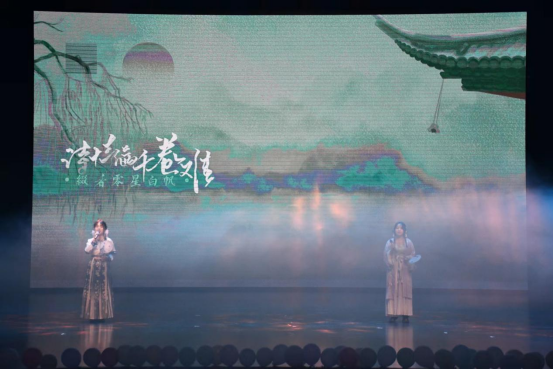 可曾见过墨染山水,江上独舟?一曲《烟雨行舟》,美妙的歌声带领观众走进江南,感受一蓑烟雨中生活的闲适惬意,聆听江南诗语里道不尽的故事,手执素伞,轻倚栏杆,如诗如画之美景尽收眼底。