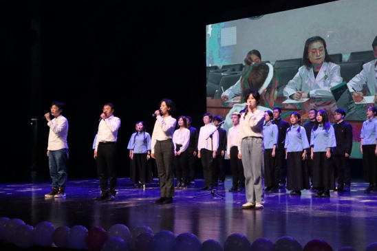 晚会以合唱《错位时空》收尾,马杰院长、杨晓虹老师、王托老师、各年级辅导员与21级、22级和23级同学共同完成演唱。星空之下,我们仰望无数先辈走进风雨硝烟,创造梦中的新天地,如今尘埃落定,国泰民安,映出我们心中共同的美好愿景。是先辈的负重前行,才有我们今天的岁月静好,先辈们的付出,我们必将牢记在心。