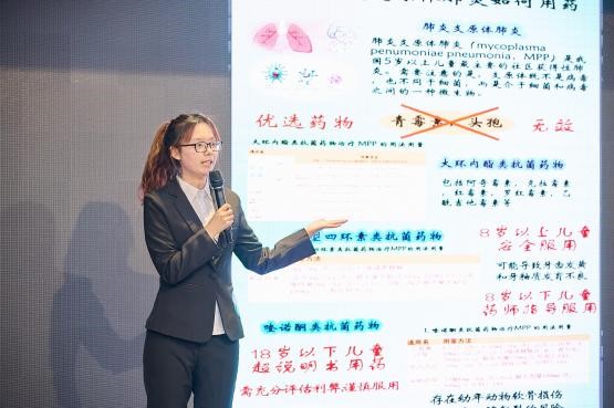 学子扎实的专业基础和良好精神面貌。来自2021级临床药学的付宇嘉、祝宏凯、孙尚斌、许晶晶、刘闯鸣、闫旭及肖晴7名同学将他们的作品《抗菌药物常见错误及指南》在现场以情景剧的形式呈现,表演生动形象,贴近生活,将药学科普融入其中,最终荣获团体组文艺作品二等奖。我院2021级本科生付宇嘉同学的展板作品《抗菌“药”知道,儿童肺炎支原体肺炎如何用药》荣获本次展板组二等奖。付宇嘉同学在汇报环节表现优异,给评委老师们留下了深刻的印象,展现出包子漫画