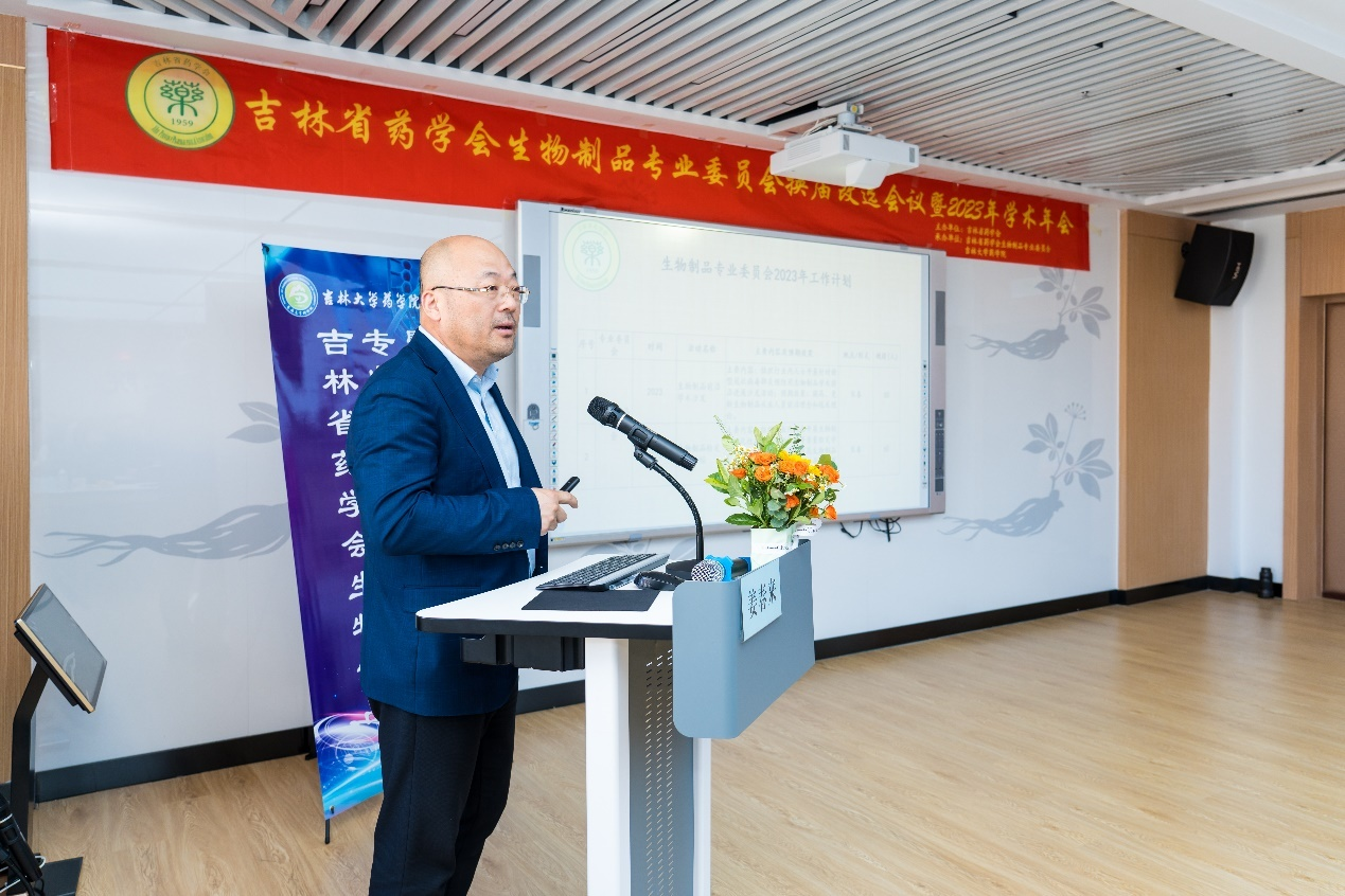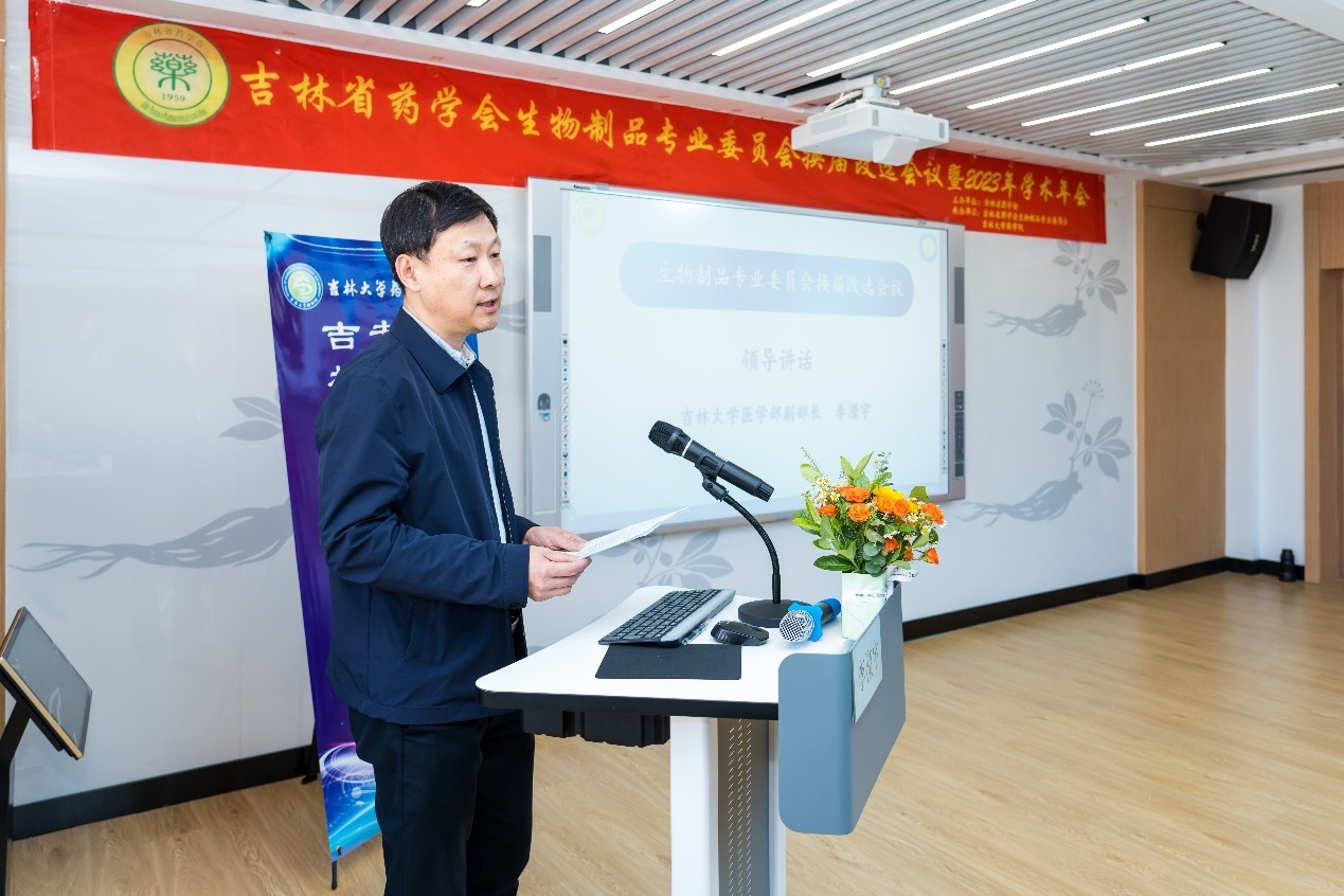 医学部副部长李滢宇、吉林省药学会理事长徐飞现场参会并讲话。省药学会生物制品专业委员会委员候选人60人参会。