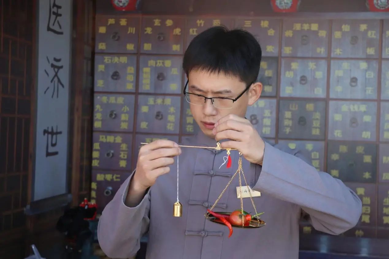 现场共设置两种游戏,在“掂斤估两易本草”游戏中,参与活动的同学在药童决明处抽取作物标牌,前往采摘园中找寻对应作物,采摘完毕后返回药童决明处称重,若在误差范围内,即可兑换酸梅汤食疗药包中的一味药材。参与活动的同学既可亲自体验采摘收获的乐趣,又能认识基地农林作物,并获得相关生药知识的讲解,进一步认识到农业的重要性,药学专业的实用性。在“擘两分星准药量”游戏中,我院在学科基础上融入了中国传统元素,参加活动的同学在药童少辛处抽取写有题号的题签,学徒为同学念出有关中药材知识的题目及选项,同学根据选项将箭投进相对应答案的“壹”壶或“贰”壶中,最后由药房先生给出答案并开展文言文式科普讲解。同学们在游戏中体会古时士大夫投壶游戏之乐,同时也学习了中草药的相关知识。游戏之外,同学们还可在“杏林百草堂”获得纪念印章,为自己的“成绩单”填上一抹靓丽的颜色与标记。