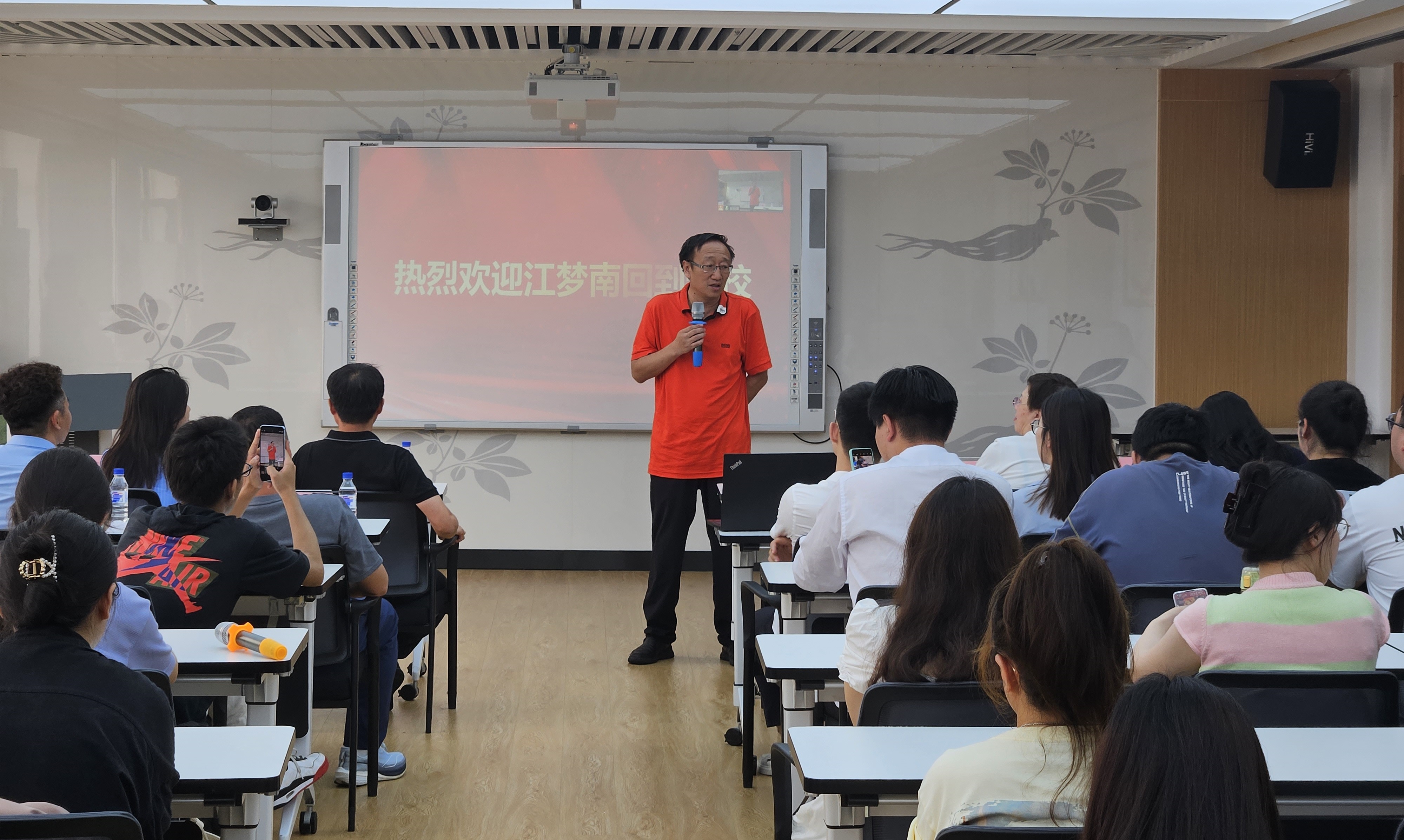 江梦南的硕士导师杨晓虹教授讲述了她记忆中梦南的艰难求学之路,并鼓励同学们,在前进道路上一定会遇到困难,克服困难并且解决问题的过程,就是不断提高自己,不断完善自己的过程,所以无需害怕困难。并寄语梦南:保持初心、戒骄戒躁,常怀感恩之心,取得更大的进步!