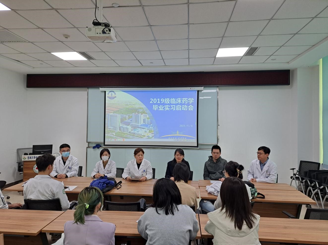 第一、第二、第三临床医院。第一临床医院张松灵副院长、教学部朴美花副主任、实习基地主任张四喜、宋燕青等,第二临床医院教学部包洪岩主任、实习基地主任翟丽杰等,第三临床医院实习基地于倩主任、马海明副主任等以及19临床药学专业全体学生参加了毕业实习交流座谈会。