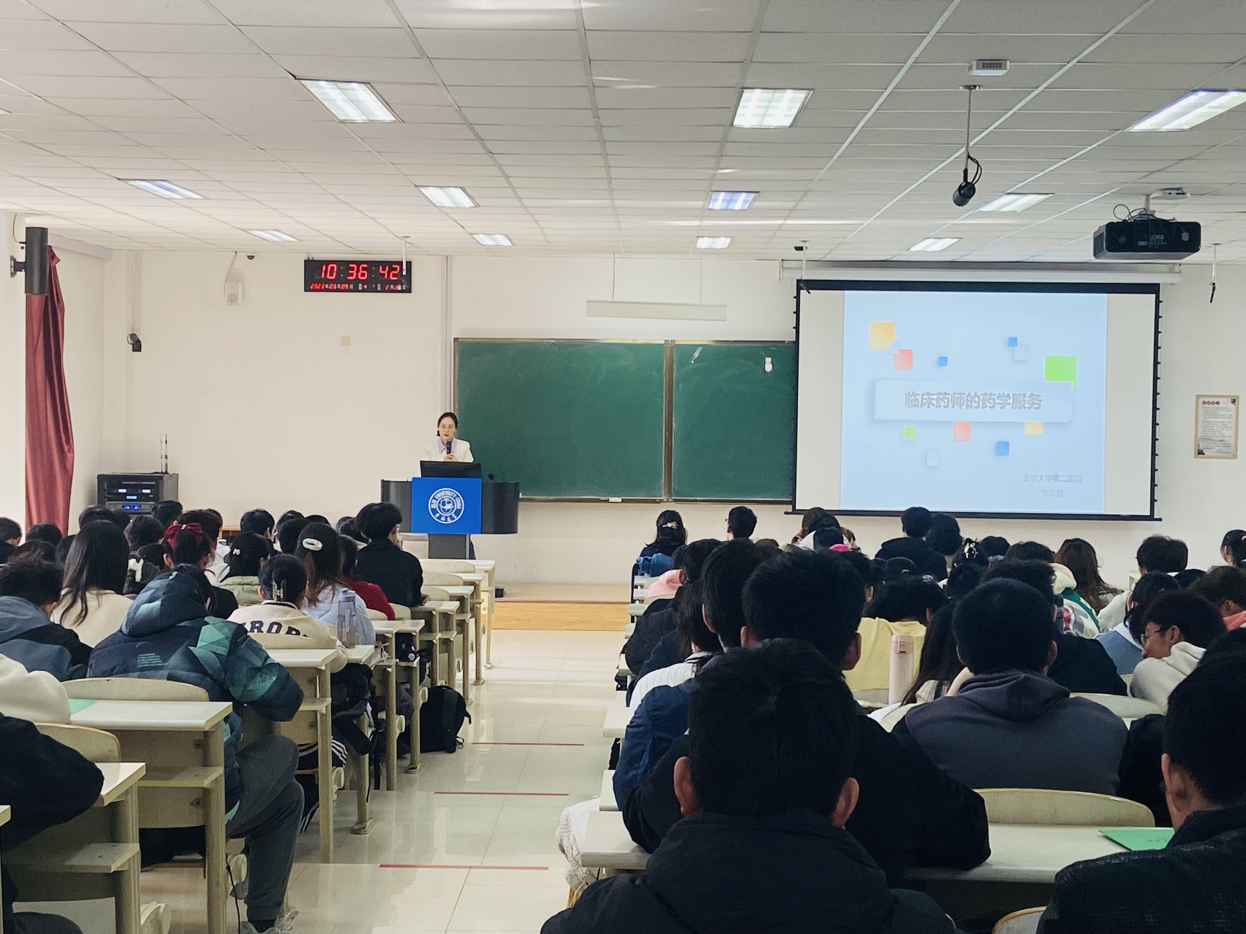 党委副书记刘丽慧、副院长管清香、药学系主任徐华丽、学生工作办公室主任王托、白求恩第二医院药剂科副主任张新茹以及2022级全体学生参加。
