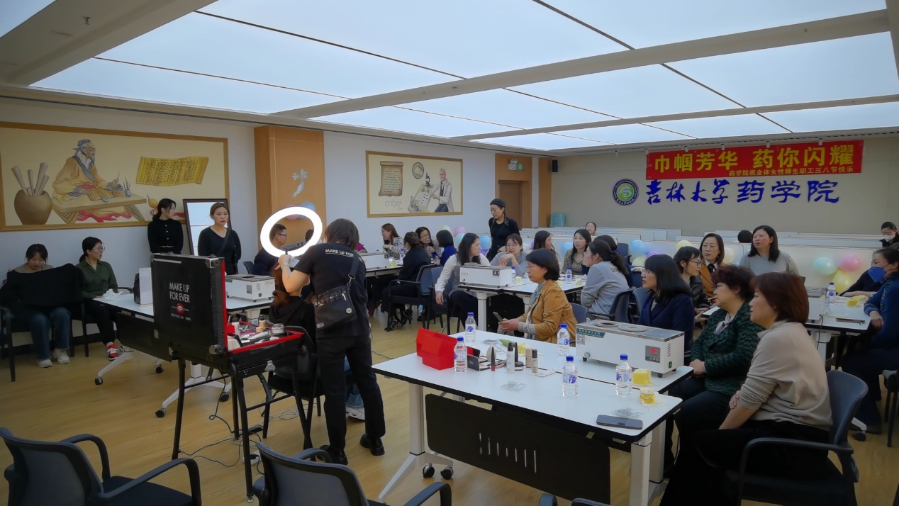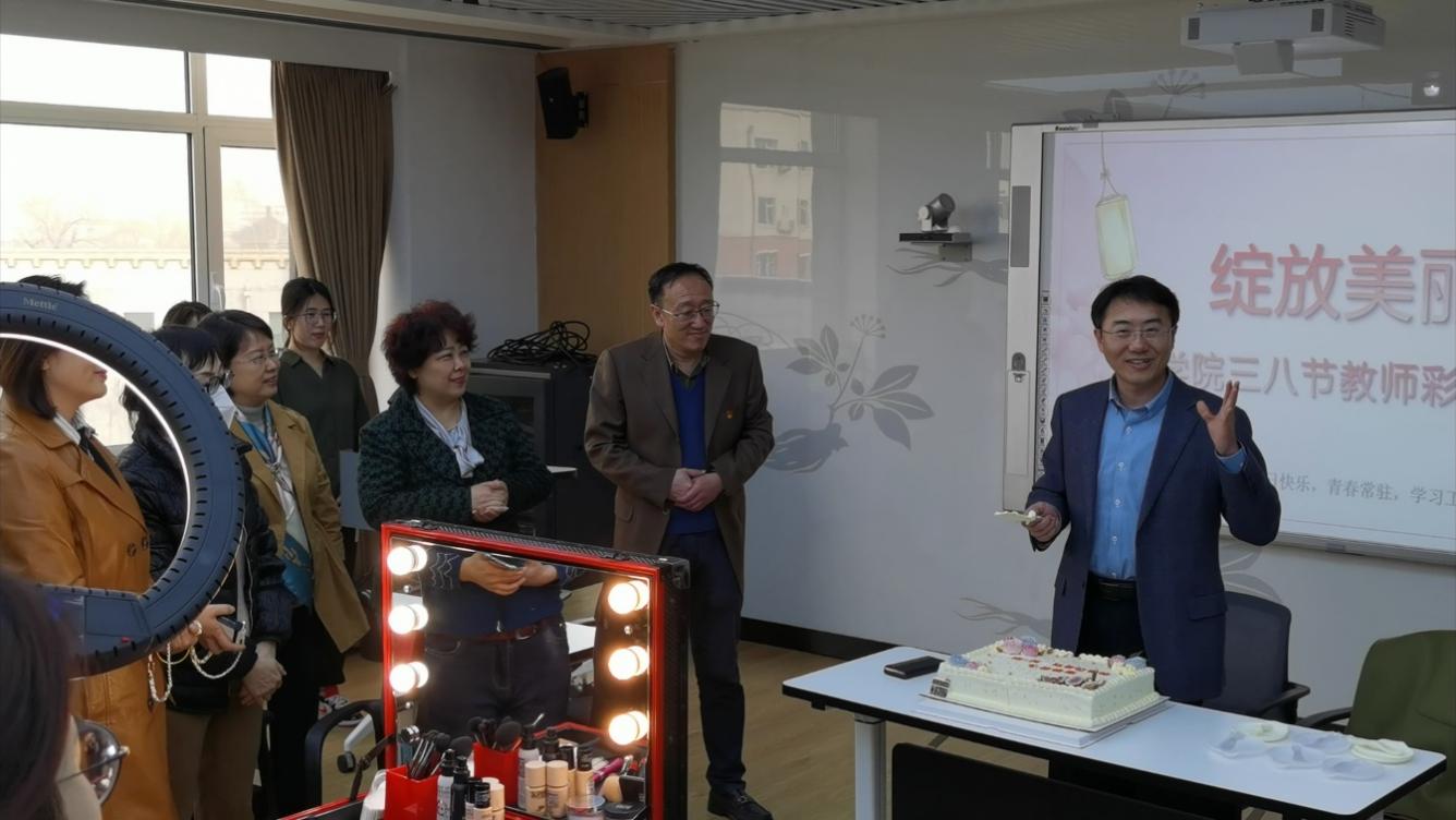 教职工设计日常的妆容,讲解上妆技巧,并拍摄了精美的工作照片。活动荣幸邀请到了学院领导班子以及全员女教职工老师参加了此次活动。