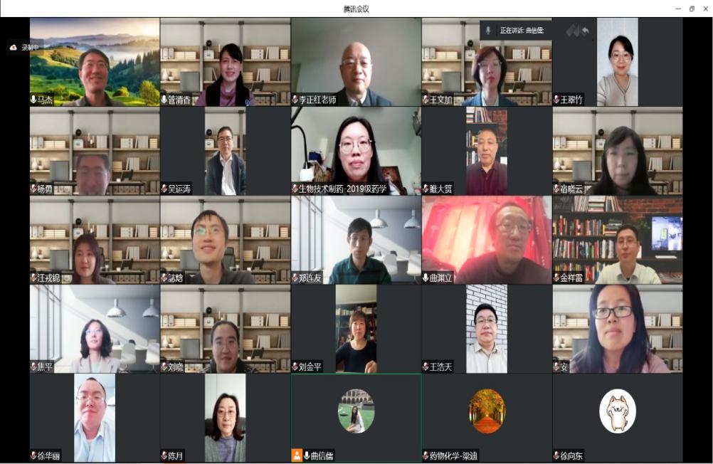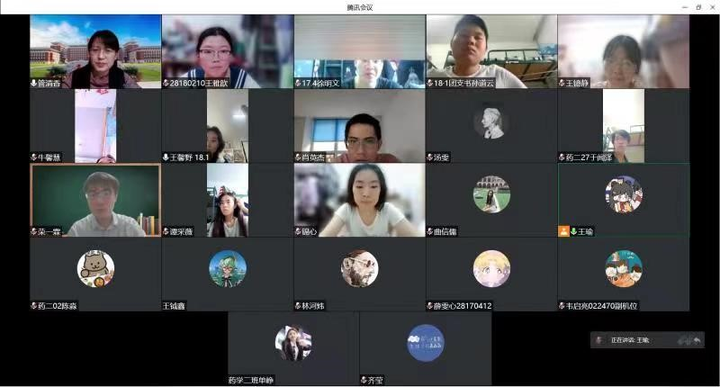 学院严格按照教育部推进高校课程思政建设的相关要求,督促在线教学授课教师切实落实课程思政建设。课前需有5分钟防疫精神宣讲,将疫情“危机”转化为思政教学“契机”。为了鼓励学生积极面对抗疫,安心学习,药物化学教研室采取多种形式进行宣传教育。徐国兴主任利用歌曲、魔术、二人转等视频进行抗疫必胜宣传;周小平老师在课前抗疫宣传中,采用更贴近学生自身的内容,并与学生互动,通过弹幕共同为包子漫画