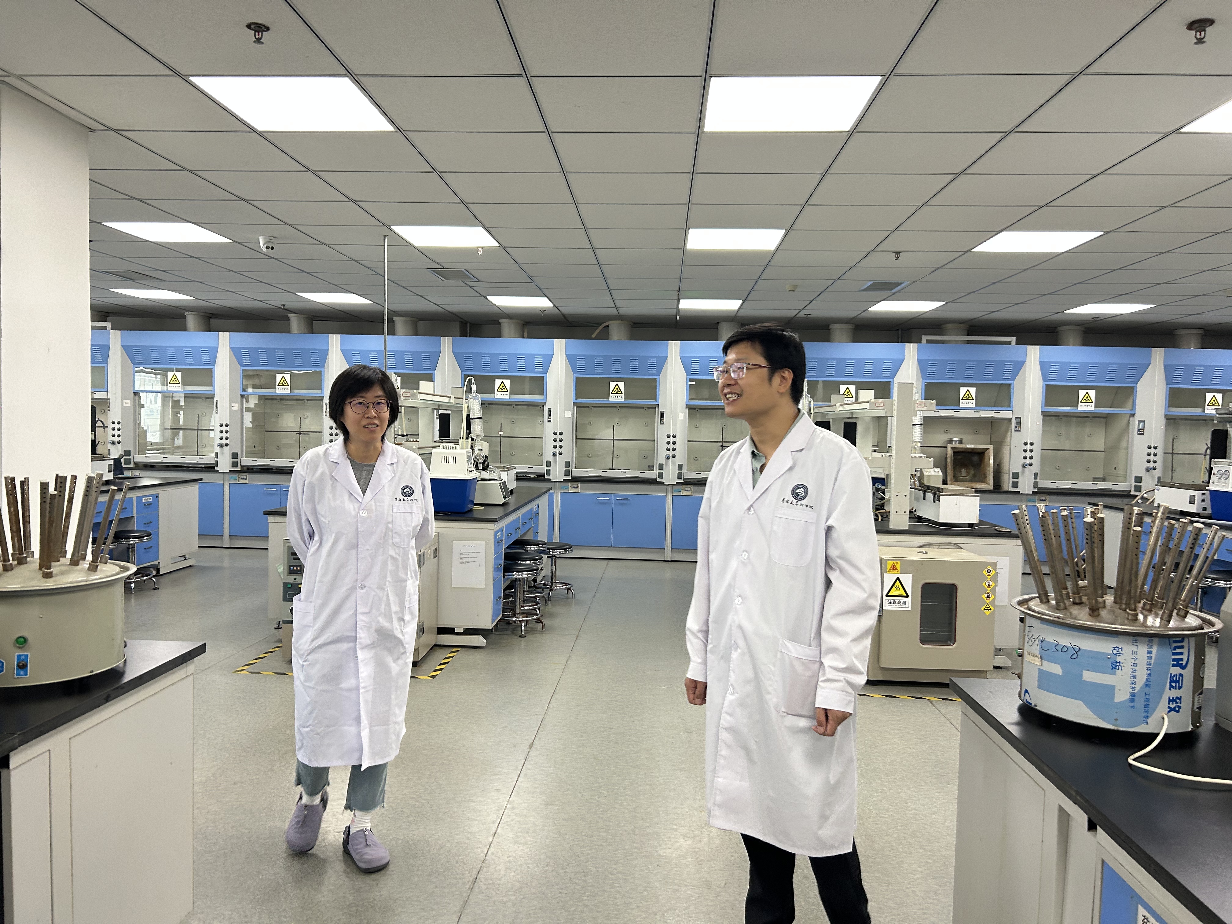 检查组秉持“全覆盖、零死角、严标准”的原则,重点围绕实验室安全、消防安全、水电安全、危险化学品存放管理等关键环节展开实地检查。从整体情况看,院、所、中心各实验室安全状况良好,实验场所环境整洁、通道畅通,实验药品管理规范、存放有序、标识完整。