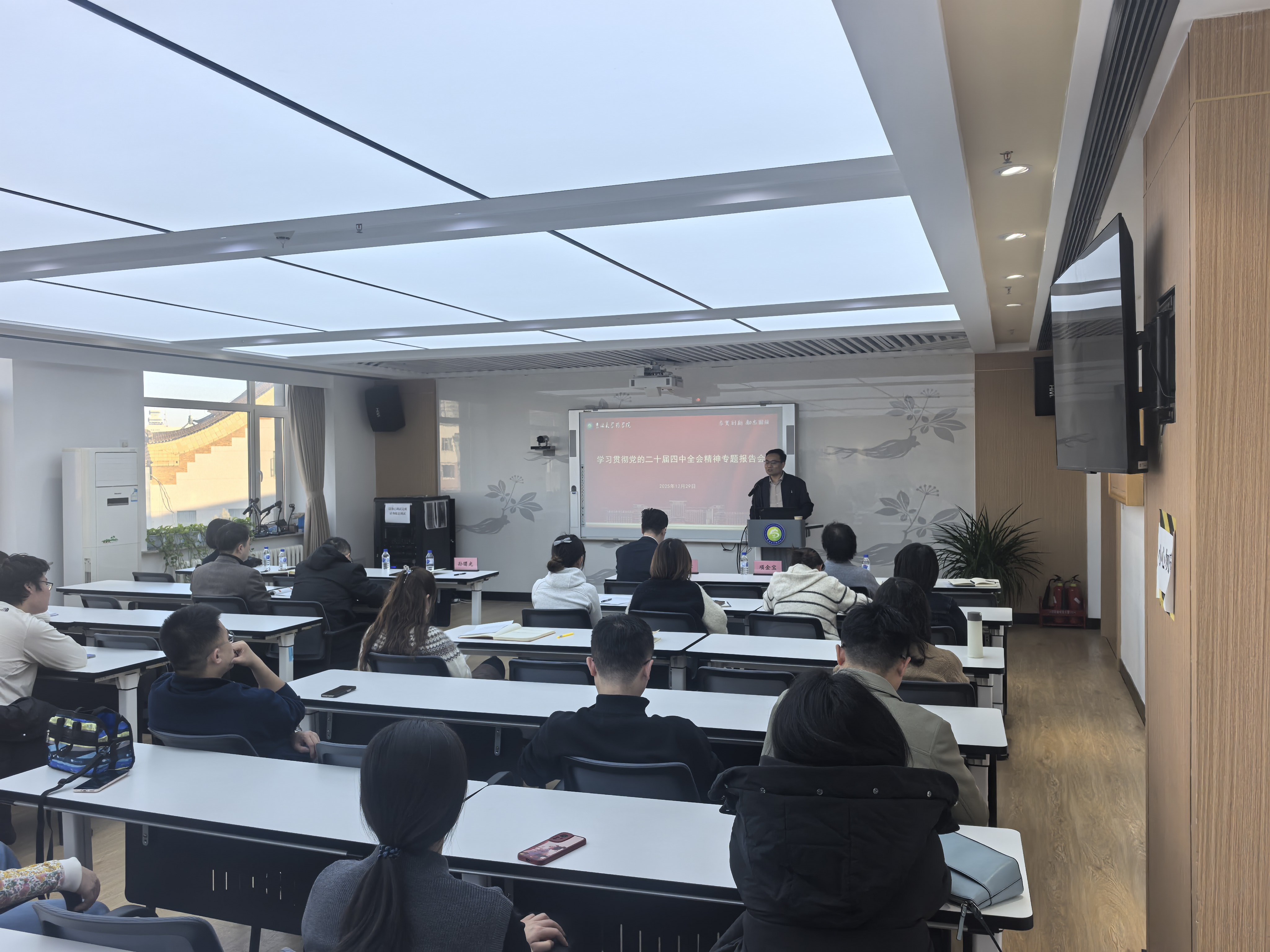 学习贯彻党的二十届四中全会精神专家宣讲团成员、考古学院院长段天璟教授担任主讲嘉宾,学院全体教职工党员、本科生党员代表参加会议。会议由学院党委书记孙曙光主持。